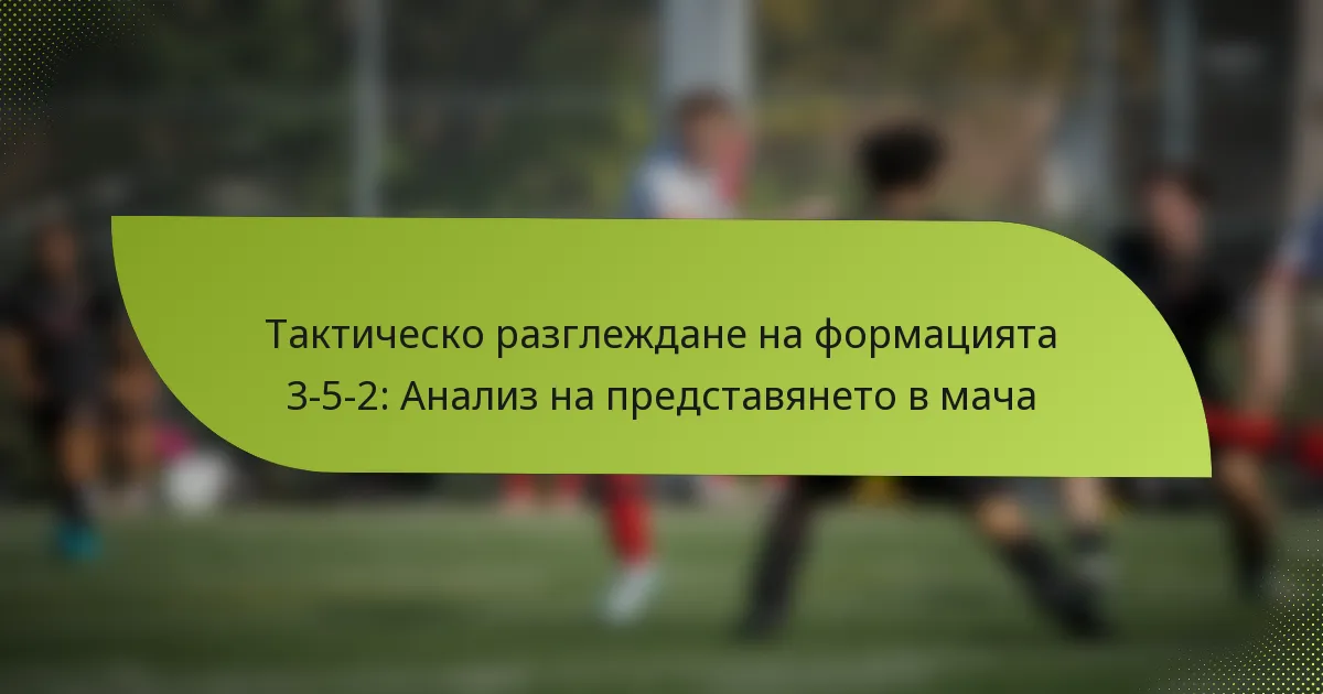 Формацията 3-5-2 е тактическа схема в футбола, която придава приоритет на контрола в средата на терена и защитната компактност. Чрез използването на трима централни защитници и петима полузащитници, тази формация създава здрава структура, която подобрява владеенето на топката и улеснява бързите преходи, позволявайки на отборите ефективно да управляват както атакуващи, така и защитни ситуации. Key sections in the article: Toggle Какво представлява формацията 3-5-2 и нейните ключови характеристики? Определение и структура на формацията 3-5-2 Роли на играчите във формацията 3-5-2 Значение на контрола в средата на терена в 3-5-2 Значение на компактността в структурата на отбора Чести вариации на формацията…